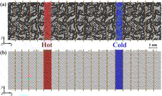 - Müller-Plathe, F. A simple nonequilibrium molecular dynamics method for calculating the thermal conductivity. J. Chem. Phys. 1997, 106, 6082–6085. [Google Scholar] [CrossRef]