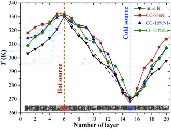 - Chang, S.W.; Nair, A.K.; Buehler, M.J. Geometry and temperature effects of the interfacial thermal conductance in copper– and nickel–graphene nanocomposites. J. Phys. Condens. Matter 2012, 24, 245301. [Google Scholar] [CrossRef]