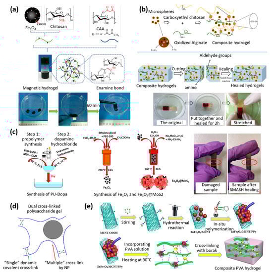- Zheng, W.; Li, Y.; Wei, H.; Gao, G.; Zhang, D.; Jiang, Z. Rapidly self-healing, magnetically controllable, stretchable, smart, moldable nanoparticle composite gel. New J. Chem. 2020, 44, 10586–10591. [Google Scholar] [CrossRef]