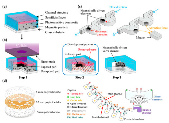 - Nakahara, T.; Suzuki, J.; Hosokawa, Y.; Shimokawa, F.; Kotera, H.; Suzuki, T. Fabrication of magnetically driven microvalve arrays using a photosensitive composite. Magnetochemistry 2018, 4, 7. [Google Scholar] [CrossRef]