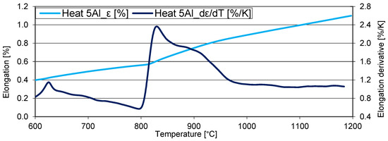 Dilatometric curve—heating at 3 °C/min. Heat 5Al (1% C and 5% Al).