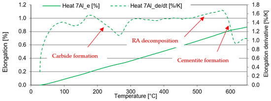 Tempering dilatometric curve—heating up at 3 °C/min. Heat 7Al.