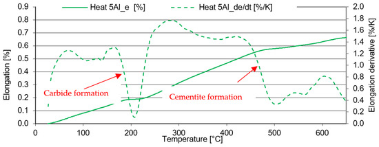 Tempering dilatometric curve—heating at 3 °C/min. Heat 5Al.