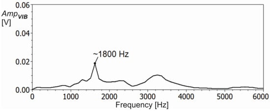 From the recorded course of the resultant force component FXY, a fragment of about 0.4 s width was taken for the final cutting process analysis (see Figure 4). Additionally, before cutting tests, a modal analysis of the most flexible system, i.e., the tool-holder system, was carried out. The spectral characteristic of the system response for impulse excitation is shown in Figure 5.