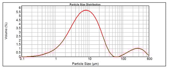 Particle size distribution obtained by granulometric analysis of the natural diatomite sample.