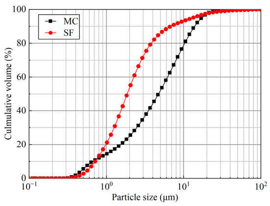 Particle size distributions of MC and SF.