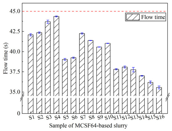 Flow time of the MCSF64-based slurry.
