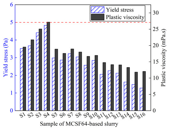 Plastic viscosity and yield stress of the MCSF64-based slurry.