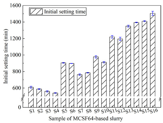Setting time: A Vicat apparatus was used to test the setting time of the fresh slurry corresponding to the Chinese Standard GB/T 1346-2011. In this study, only the initial setting time (IST) was used as an example to illustrate the coagulation characteristics of MCSF64-based grouts.