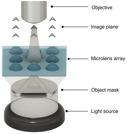 - Bae, S.-I.; Kim, K.; Yang, S.; Jang, K.-W.; Jeong, K.-H. Multifocal microlens arrays using multilayer photolithography. Opt. Express 2020, 28, 9082–9088. [Google Scholar] [CrossRef]