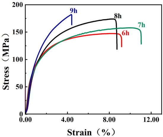 The stress–strain curves of CNT/AlSi10Mg composites with different ball-milling times.