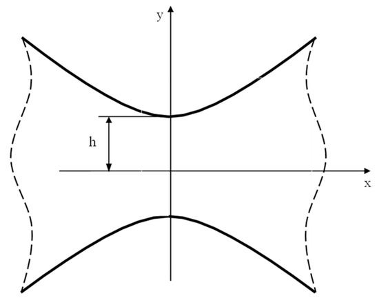Consider a plate weakened by two symmetrical hyperbolic notches (Figure 2), which can be obtained by invoking the following complex mapping [49]: