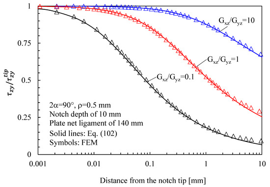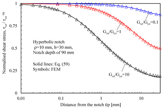 The shear stress components can also be re-written as a function of the notch tip stress, .
