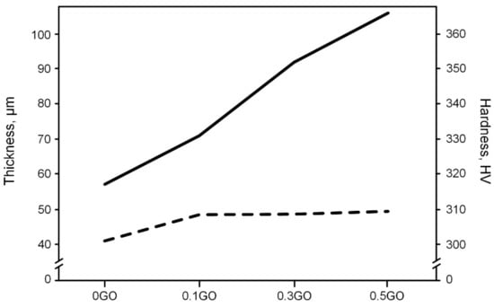 - Grigoriev, S.; Peretyagin, N.; Apelfeld, A.; Smirnov, A.; Rybkina, A.; Kameneva, E.; Zheltukhin, A.; Gerasimov, M.; Volosova, M.; Yanushevich, O.; et al. Investigation of the Characteristics of MAO Coatings Formed on Ti6Al4V Titanium Alloy in Electrolytes with Graphene Oxide Additives. J. Compos. Sci. 2023, 7, 142. [Google Scholar] [CrossRef]