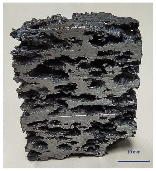 - Stanev, L.; Kolev, M.; Drenchev, B.; Drenchev, L. Open-cell metallic porous materials obtained through space holders—Part I: Production methods. A review. J. Manuf. Sci. Eng. Trans. ASME 2017, 139, 050801. [Google Scholar] [CrossRef]