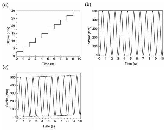 Time stroke curves: (a) feeding, (b) reciprocating motion; (c) superposed motion.