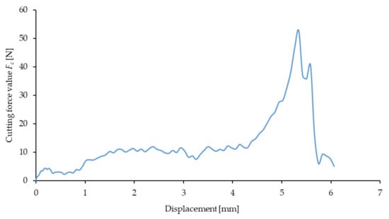 Figure 6 demonstrates an example characteristic curve describing the variance of the cutting force as a function of knife blade displacement.