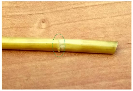 Figure 9. General view of a partially cut straw stem from a test attempt with an offset value g = 0.2 mm.