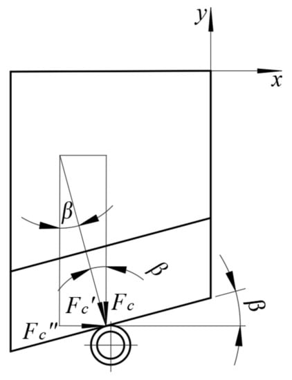 Here, Fc is the cutting force (N), Fc″ is the horizontal force component by Figure 11 (N), and β is the blade rake angle (°)