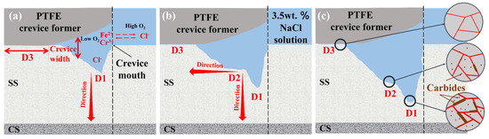 - Wu, X.Y.; Sun, J.K.; Wang, J.M.; Jiang, Y.M.; Li, J. Crevice Corrosion Behaviors Between CFRP and Stainless Steel 316L for Automotive Applications. Acta Metall. Sin. (Engl. Lett.) 2019, 32, 1219–1226. [Google Scholar] [CrossRef]