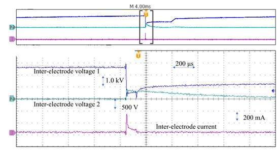 Before using the field-induced jet discharge energy, the voltages and currents on the E-Jet electrode side and solid electrode side should be considered. Moreover, to disclose the induced discharge mechanism of the solid electrode side and verify the equivalent circuit built in the last section, the sequency of these two discharges should be taken into consideration. Furthermore, to control the EDM process, the distance between the solid electrode and the workpiece, as well as the distance between the E-Jet electrode and the workpiece, should be studied, which can build a foundation for gap servo control during the EDM process.