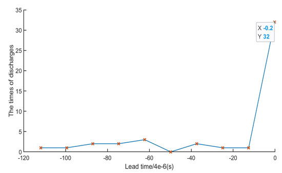 Two types and eight groups of experiments were designed to capture the waveform of a single discharge and count the sequence of discharges in order to understand the relationship between the discharges on both sides. the gap between the E-Jet nozzle and the sacrifice workpiece surface was fixed at first, and the distance between the solid electrode and the workpiece randomly adjusted. The discharge signals were sampled at four-level distances. In the second group, the distance between the solid electrode and the workpiece was fixed, and the distance between the nozzle and the sacrifice workpiece randomly regulated. All discharge signals are collected and a histogram was created, as shown in Figure 5. The abscissa represents the leading time difference of the E-Jet electrode EDM and the solid electrode EDM.