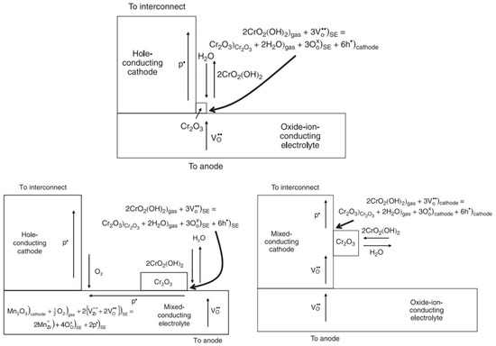 Electrochemical deposition of Cr2O3 on non-mixed conducting and mixed conducting electrolytes and electrodes [35].