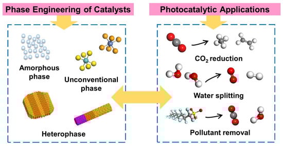 Schematic illustration of different types of phase engineering and the applications in photocatalysis.