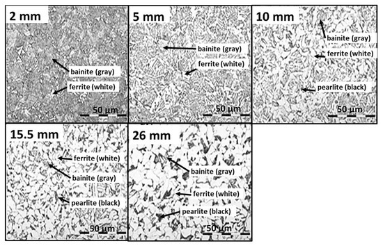 Example of measurement results for cooling Regime 2 and a sample thickness of 30 mm, steel grade S355: microstructure analysis.