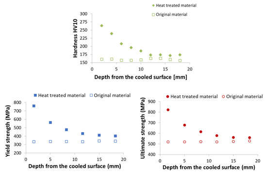 Measured Vickers hardness for material S355: original material and heat-treated (regime shown in Figure 19).