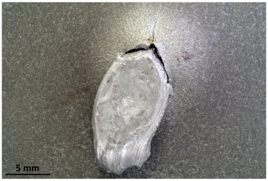All the observed shots showed massive fragmentation of the bullets, with no full penetration of the 8 mm thick targets. However, evidence of non-complete fragmentation was reported on both FMJ bullets: a large solid part of the bullet, with dimensions comparable with the caliber, was found bouncing back after the shot on Creusabro® 8000 (Figure 16), and a significant volume of filler material together with part of the jacket material was found having penetrated the first plate of Durostat® 400 (Figure 12 and Figure 14). These two cases, therefore, do not satisfy the theoretical hypotheses supporting the formula for the load history estimation demonstrated in Section 2.4, For this reason both FMJ shots should be considered control cases to evaluate the effectiveness of the method when its applicability conditions are not verified.