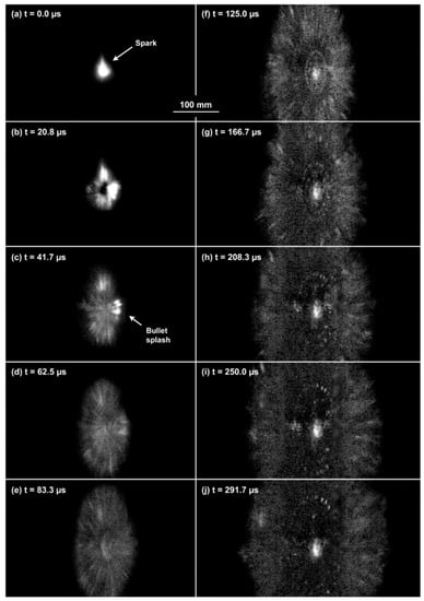 - Ma, H.; Chen, P.; Shi, H.; Zhao, J. Measurement of Bullet Velocity Parameter from High-Speed Sequential Images. J. Phys. Conf. Ser. 2021, 1827, 012027. [Google Scholar] [CrossRef]