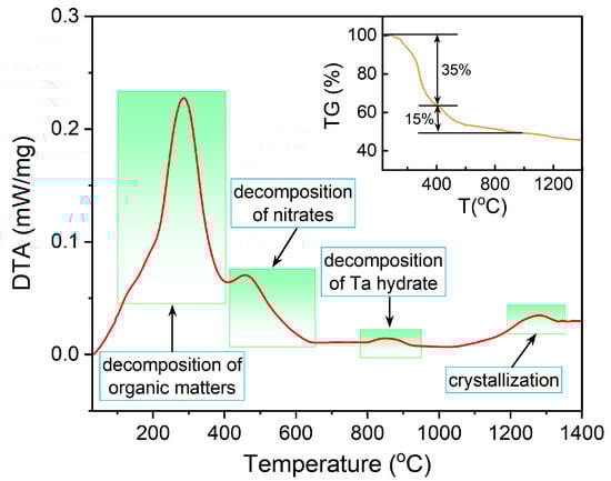 - Todorovsky, D.S.; Getsova, M.M.; Vasileva, M.A. Thermal decomposition of lanthanum-titanium citric complexes prepared from ethylene glycol medium. J. Mater. Sci. 2002, 37, 4029–4039. [Google Scholar] [CrossRef]