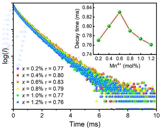 - Dong, X.; Pan, Y.; Jia, Y.; Liu, R.; Lian, H.; Lin, J. Improved luminescence properties of a novel red dodec-fluoride phosphor Ba3Sc2F12:Mn4+ with extraordinary thermal stability for WLED application. J. Mater. Chem. C 2020, 8, 6299–6305. [Google Scholar] [CrossRef]