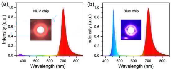 - Huang, X.; Liang, J.; Li, B.; Sun, L.; Lin, J. High-efficiency and thermally stable far-red-emitting NaLaMgWO6:Mn4+ phosphors for indoor plant growth light emitting diodes. Opt. Lett. 2018, 43, 3305–3308. [Google Scholar] [CrossRef] [PubMed]