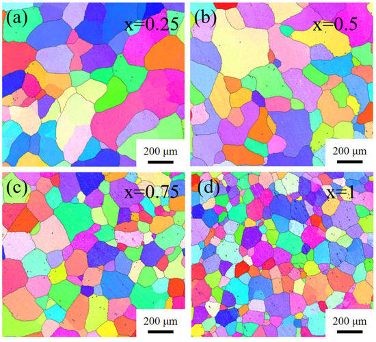 - Guan, S.; Solberg, K.; Wan, D.; Berto, F.; Welo, T.; Yue, T.M.; Chan, K.C. Formation of fully equiaxed grain microstructure in additively manufactured AlCoCrFeNiTi0.5 high entropy alloy. Mater. Des. 2019, 184, 108202. [Google Scholar] [CrossRef]