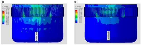 Stress distribution in the polymer flexspline model: (a) ABS—acrylonitrile–butadiene–styrene, (b) PA2200—polyamide.