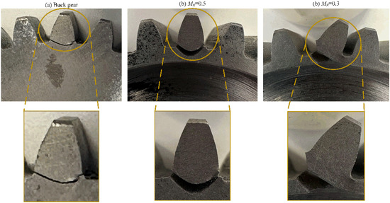 - Yan, H.; Wei, P.; Zhou, P.; Chen, L.; Liu, H.; Zhu, C. Experimental investigation of crack growth behaviors and mechanical properties degradation during gear bending fatigue. J. Mech. Sci. Technol. 2022, 36, 1233–1242. [Google Scholar] [CrossRef]