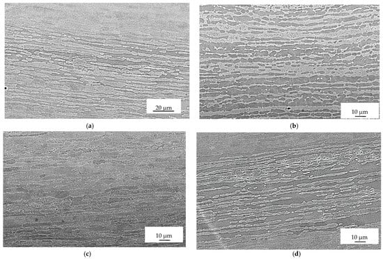 Figure 6 displays the microstructures observed far away from the fracture surface of the samples tested under different conditions. The images correspond to the sample tested without current (A), with a single pulse at 740 A/mm2 (B), with a multi-pulse current at 45 A/mm2 (C), and with the application of a technical dryer (D).