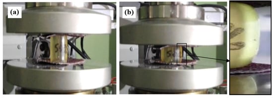 View of an exemplary sample in the initial (a) and final (b) compression stage.