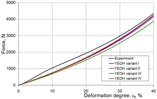 Attempts to compare the operation of selected material models (Mooney–Rivlin, Yeoh) are shown in [6], where only the compression test was used to determine the material constants.