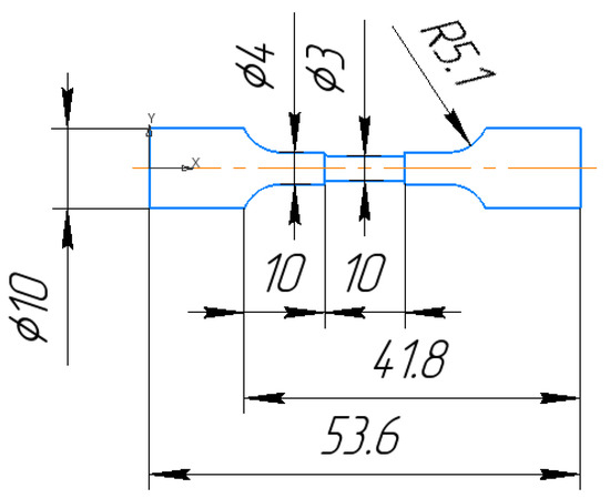The main objective of the experimentation is to study the effect of using the combined technology of die-sinking EDM and subsequent plasma electrolytic polishing of austenitic steel (12Cr18Ni10Ti) on the properties of the surface (recast) layer of the workpiece (i.e., changes in the roughness of the treated surface; induced residual stresses; changes in fatigue life of samples). This selected steel is in demand in most industries as well as in the petrochemical industry. This steel composition is compatible with an aggressive environment. Ring electrode tools were made for the experimental runs (please refer to Figure 1). The material of the electrode tools is electrolytic copper. The workpiece (12Cr18Ni10Ti) was EDMed in the dog-bone-shaped geometry. The line diagram of the workpiece is shown in Figure 2.