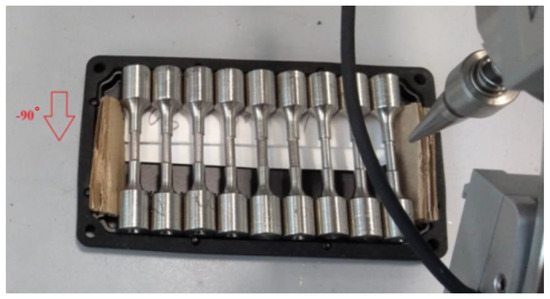 An ultrasonic machine Shimadzu USF-2000 (Shimadzu Europa GmbH, Kyoto, Japan) for testing the samples for fatigue life is shown in Figure 4. The principle of the ultrasonic analysis was that the generator creates electrical oscillations with a frequency of 20 kHz, which were converted into mechanical energy with the aid of piezoelectric crystal, which was further amplified by a waveguide and fed to the sample. The upper portion of the sample was attached to the waveguide, whereas the other end remained free. An air cooling system was used to prevent overheating.