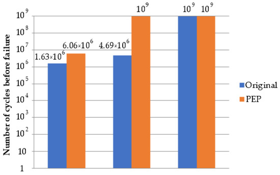 The PeP process increased the durability of the samples obtained using the EDM method in the rough machining mode up to 6.06 million cycles. The samples obtained by EDM in the finishing mode and turning were not destroyed or failed, owing to minimizing/eliminating the defective layer after the PeP process.