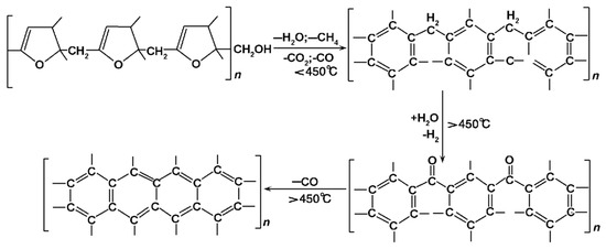 - Shindo, A.; Izumino, K. Structural Variation during Pyrolysis of Furfuryl Alcohol and Furfural-Furfuryl Alcohol Resins. Carbon 1994, 32, 1233–1243. [Google Scholar] [CrossRef]