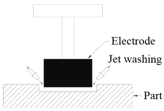 - Li, L.; Gu, L.; Xi, X.; Zhao, W. Influence of flushing on performance of EDM with bunched electrode. Int. J. Adv. Manuf. Technol. 2012, 58, 187–194. [Google Scholar] [CrossRef]