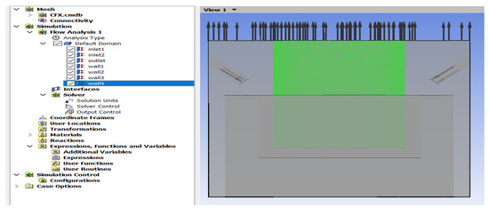 Modeling is performed after defining the boundary conditions, such as part walls, ET, and flush nozzles. Geometrical limits are similar for 2 mm, 10 mm, and 15 mm machining depth, while the angle of the nozzle changes (Figure 3).