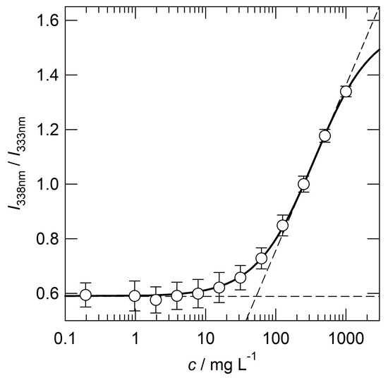 I338/I333 values as a function of the concentration of P(BA-co-DMAEA)-b-PPEGA in PBS. The concentration of pyrene was 1 μM.