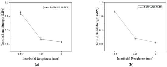 Effect of interface roughness on tensile bond strength: (a) FA0%-W0.34-PVA and (b) FA20%-W0.32-PE.