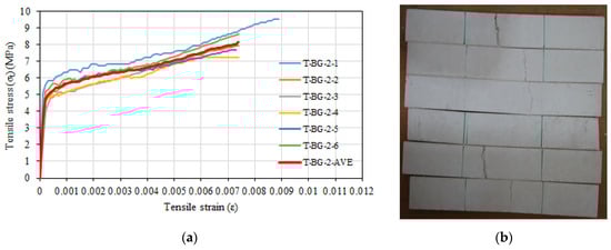 (a) Tensile stress–tensile strain relationships of T-BG-2 series. (b) View of specimens after test.